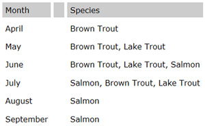 A: Lake Ontario is noted for its abundant populations of Salmon, Lake Trout, Brown Trout, Steelhead, Coho, Walleye, & Black Bass (both largemouth and smallmouth).